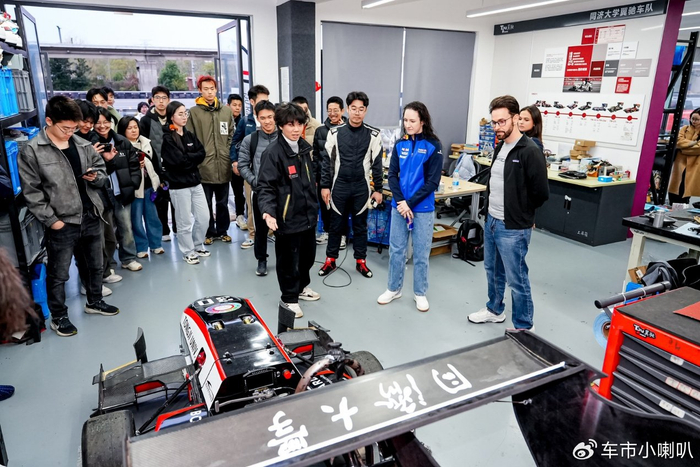 活动现场,马乐平和Alisha与学生代表们深入交流,并鼓励更多年轻人投身汽车工程与赛车运动,还一同参观了同济大学大学生汽车科技创新实践基地。