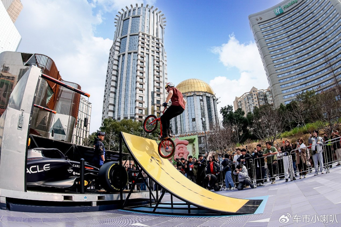 校园之外,南京路世纪广场上举办的“福特性能家族快闪”也在火热进行中。 活动自3月5日启动以来,已吸引大量车迷前来打卡体验。此前令人期待的神秘惊喜环节也终于揭晓:奥地利Red Bull签约的克罗地亚BMX小轮车骑手Marin Rantes,在快闪活动现场先后飞跃Red Bull战车以及车顶举升后高度近2.2米的福特智趣烈马,将气氛推向高潮。这一勇敢的挑战,不仅是对车手技巧与勇气的极限挑战,更是一场关于团队协作精神的致敬。